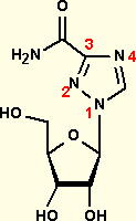 以1H-1,2,4-三氮唑为母体,在1位连有1-β-D-呋喃核糖基,在3位连有甲酰胺。