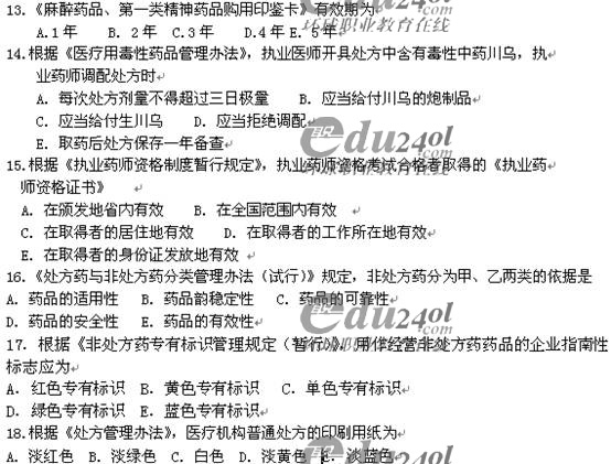 2008年药师管理与法规考试真题全套