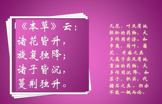 原则上温、热、辛、甘、淡属升浮;寒、凉、酸、苦、咸属沉降。但也有特殊的情况,比如巴豆。