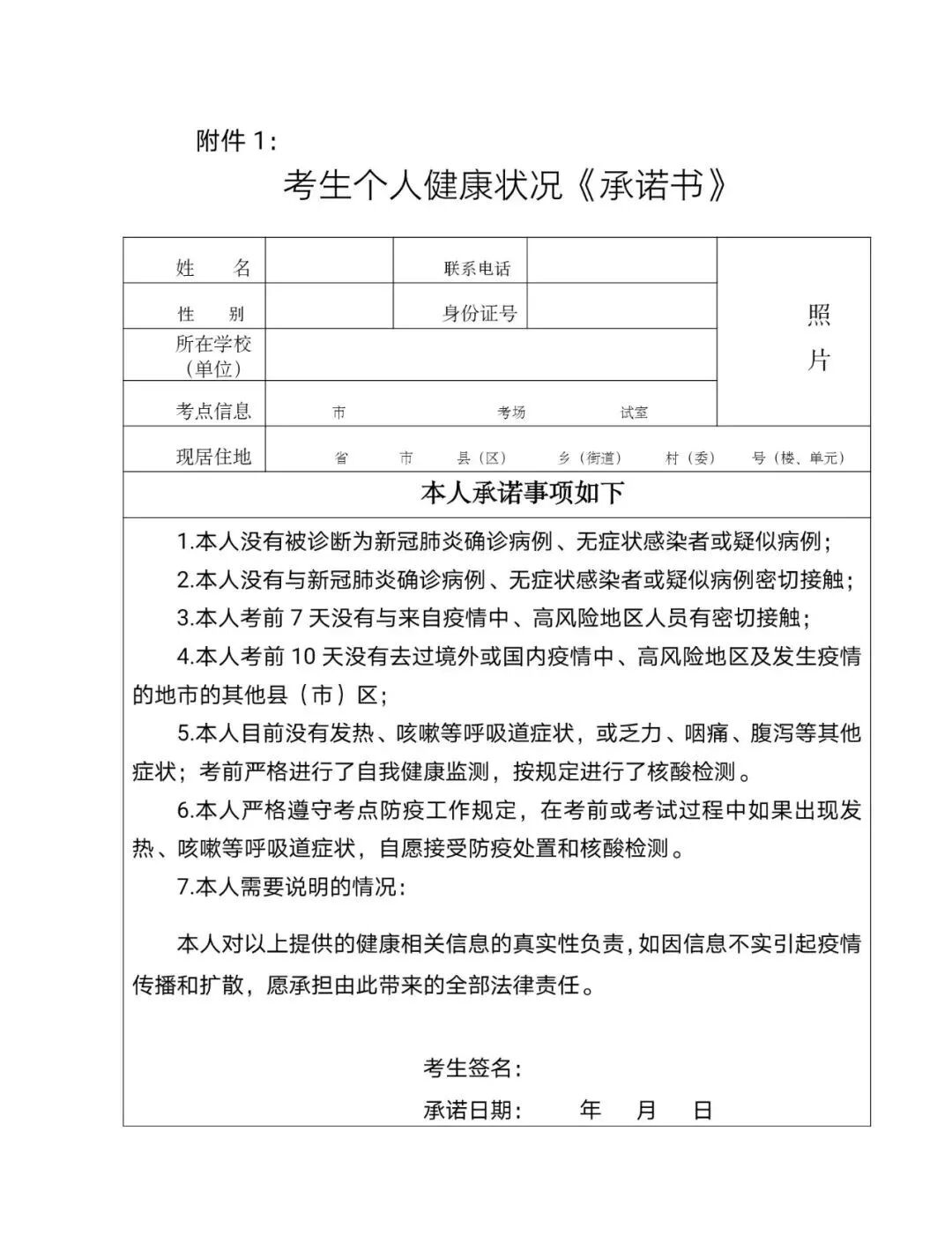 ②“考生个人健康状况《承诺书》”(见附件1)按要求填写完整,不得空项;